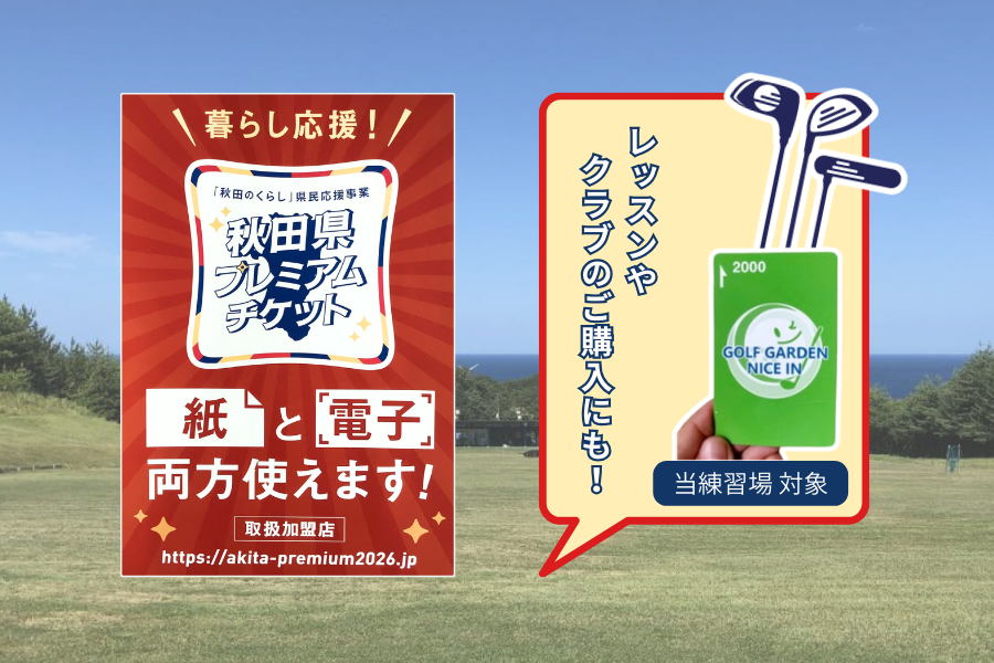 いつもゴルフガーデン ナイスインをご愛顧いただき、誠にありがとうございます。ナイスインも、秋田県プレミアムチケットの取扱い加盟店ですので、物価高対策に是非ご活用下さい!