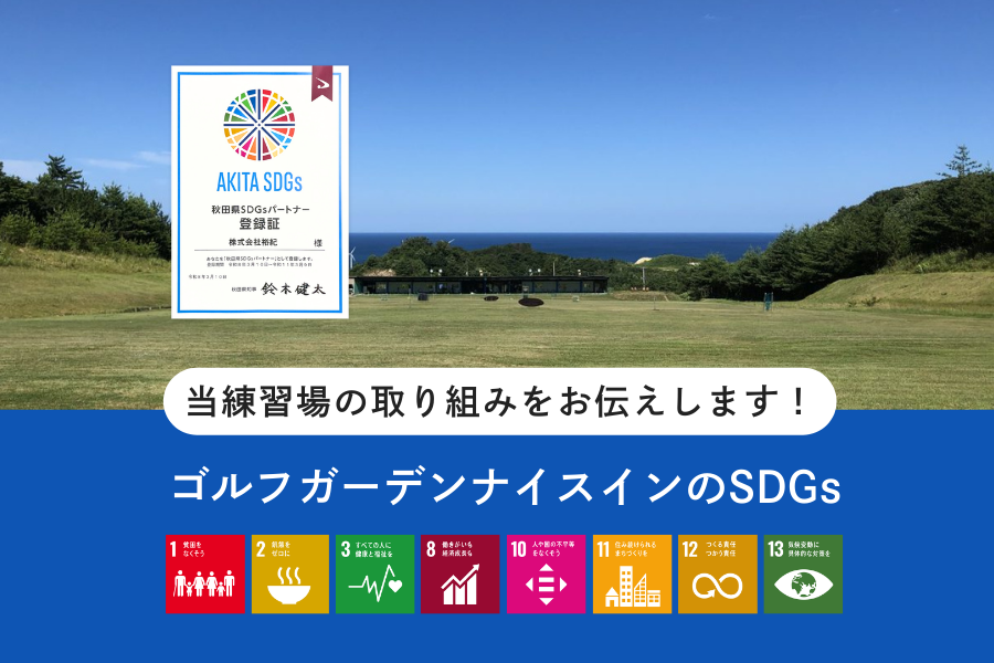 このたび、当練習場は秋田県の『SDGsパートナー』に登録されました。これからも地域のみなさまと一緒に、持続可能な未来をつくっていきます。